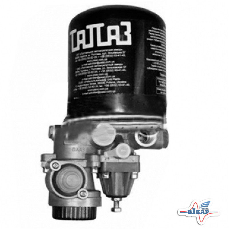 Адсорбер с регулятором давления 11-3536008 предназначен для выделения влаги из сжатого компрессором воздуха и сброса ее в атмосферу, а также для регулирования давления сжатого воздуха в пневматической системе автотранспортного средства. Выделение влаги достигается посредством адсорбционного патрона.